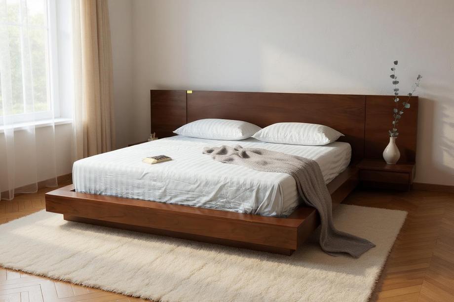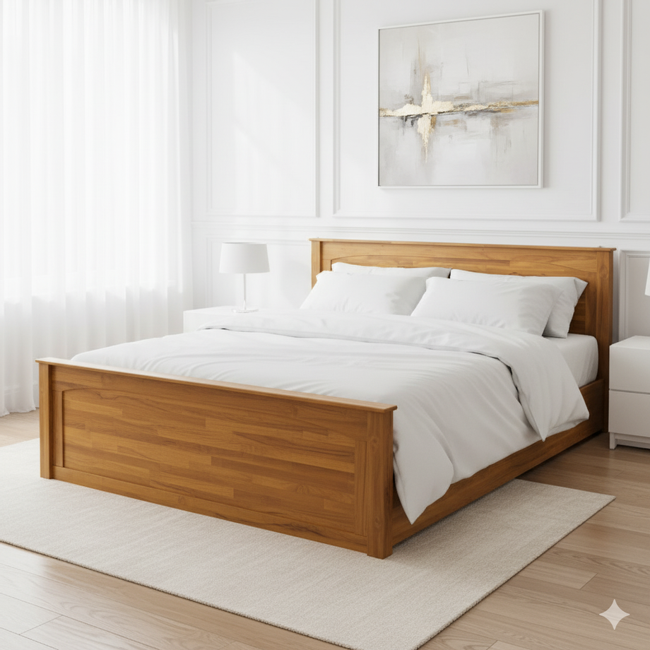 เตียงสไตล์มินิมอลเป็นที่นิยมมากในคอนโดและบ้านยุคใหม่ โทนไม้สักแท้ให้ความรู้สึกอบอุ่น และแมทช์กับผนังสีขาวหรือเอิร์ธโทนได้ดี