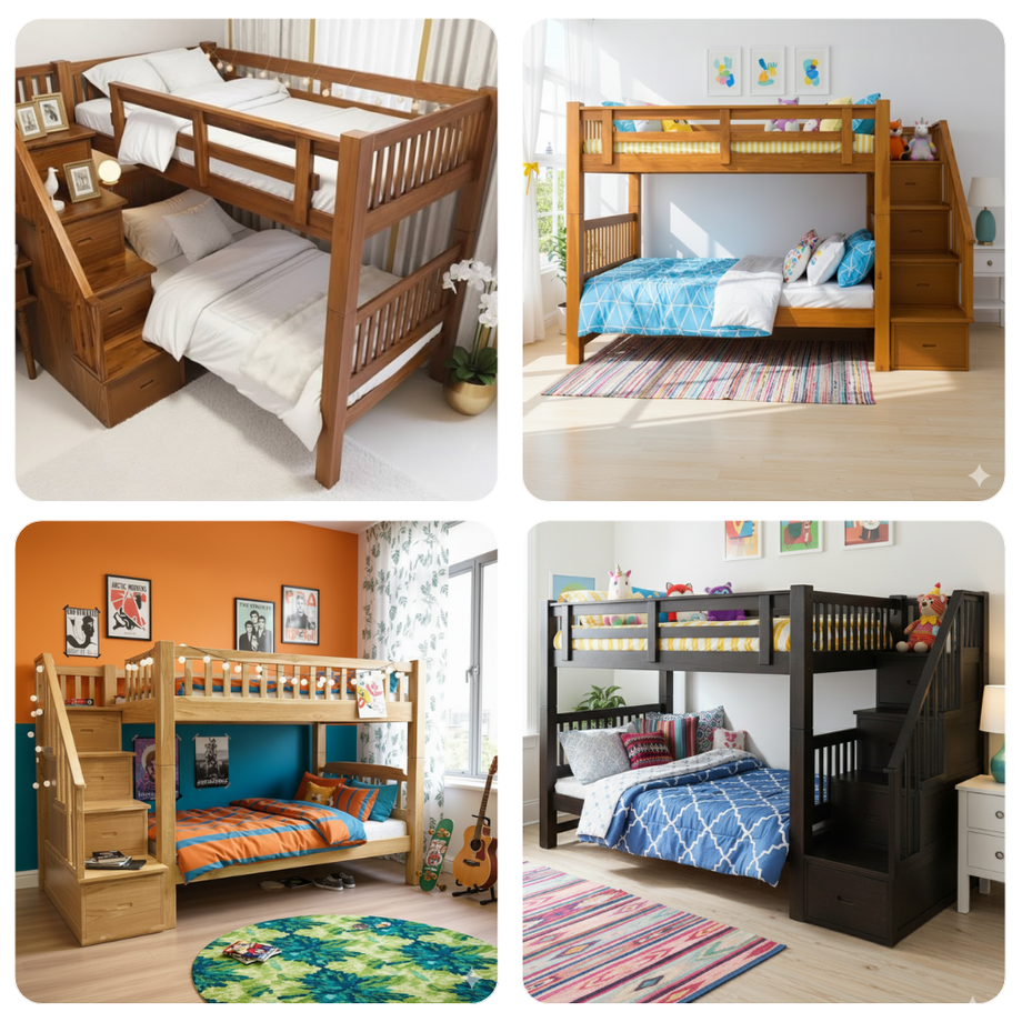 เตียงสองชั้นไม้สักขึ้นชื่อเรื่องความแข็งแรง เหมาะกับเด็กโต ผู้ใหญ่ หรือห้องที่ต้องการเพิ่มจำนวนพื้นที่การนอนโดยไม่ต้องใช้พื้นที่มากขึ้น