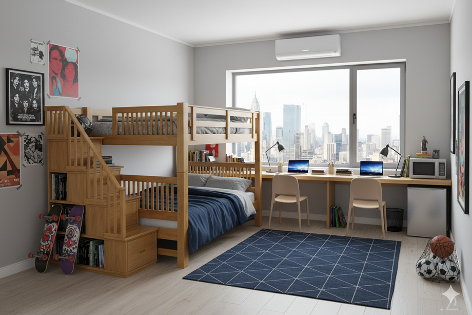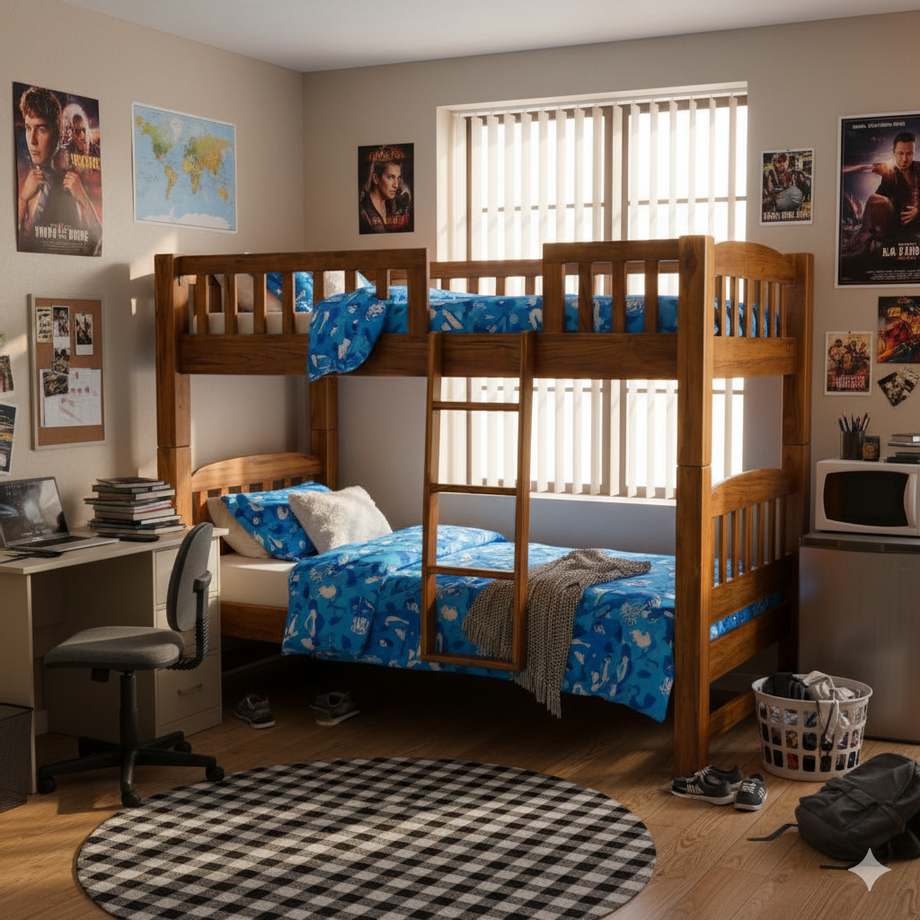 จุดเด่น: เตียง 2 ชั้นแบบมาตรฐานที่ออกแบบมาเพื่อประหยัดพื้นที่โดยเฉพาะ ทำให้ห้องดูโปร่งและกว้างขึ้นอย่างไม่น่าเชื่อ เหมาะสำหรับห้องพักนักศึกษา หรือคนที่ต้องการห้องนอนขนาดพอดีสำหรับพักผ่อน