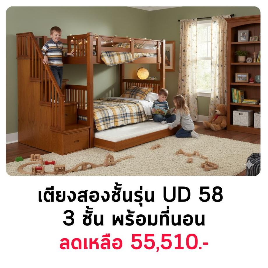 เตียงสองชั้นรุ่น UD 58 (3 ชั้น) พร้อมที่นอน 🔥 ลดเหลือ 55,510.- 🔥