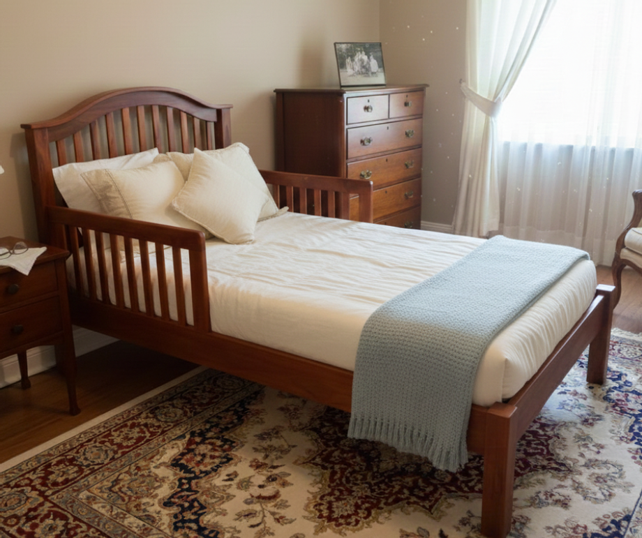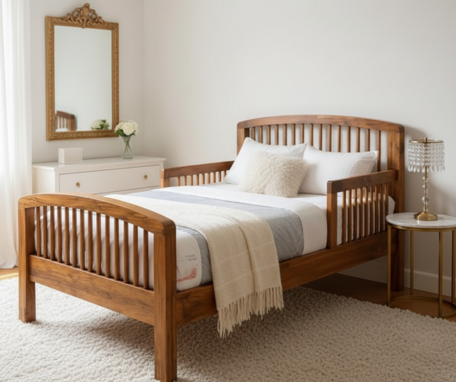 เตียงมีแผงกันตก: ออกแบบมาเพื่อความปลอดภัย ไม่ว่าจะใช้เป็นเตียงเด็กหรือเตียงสำหรับผู้สูงอายุ มาพร้อมดีไซน์ซี่ไม้ที่สวยงามและแข็งแรง