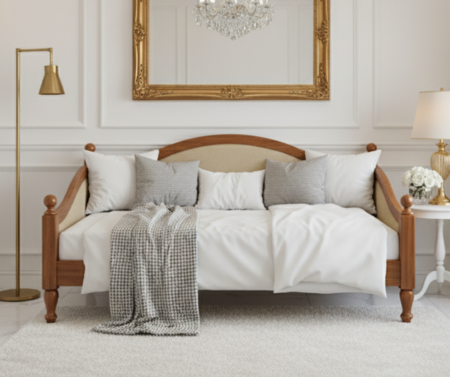 เตียงเดย์เบด (Daybed): ปรับรูปแบบเป็นเตียงกึ่งโซฟาสำหรับวางในห้องรับแขก ให้ความรู้สึกเก๋และภูมิฐานในเวลาเดียวกัน