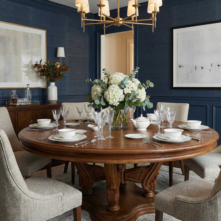 2. ประหยัดพื้นที่ และทำให้ห้องดูกว้างขึ้น ด้วยความที่ไม่มี "มุมเหลี่ยม" โต๊ะกลมจึงช่วยตัดทอนความแข็งกระด้างของห้องสี่เหลี่ยม ทำให้ห้องดูนุ่มนวลและไหลลื่น (Flow) มากขึ้น เดินรอบโต๊ะได้สะดวก ไม่ต้องคอยหลบมุมโต๊ะ เหมาะมากสำหรับบ้านที่มีพื้นที่จำกัดหรือคอนโดครับ
