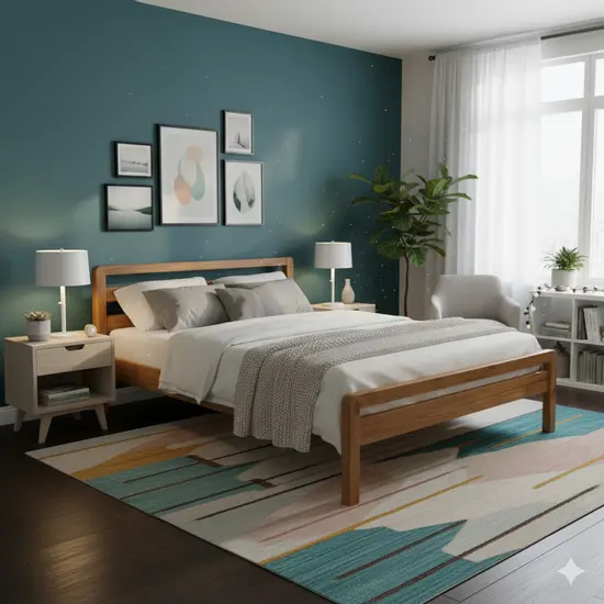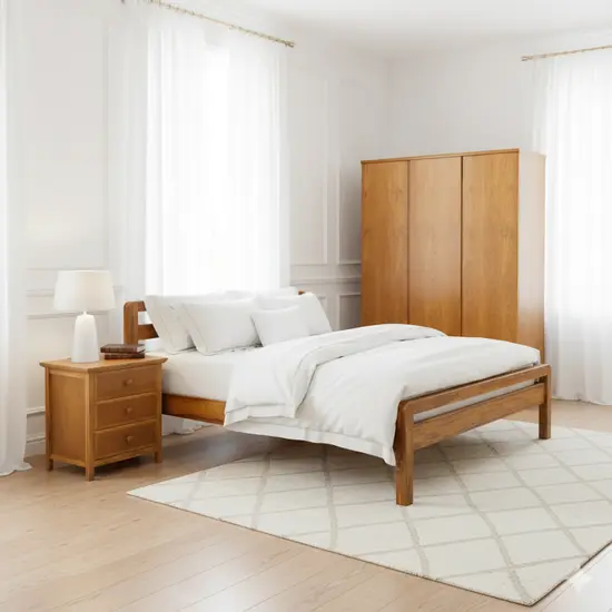 ดีไซน์ที่หรูหราและอบอุ่น: โครงสร้างเตียงและตู้เสื้อผ้าทำจาก ไม้สีธรรมชาติคุณภาพสูง ให้ความรู้สึกอบอุ่น ทนทาน และเข้าได้กับทุกสไตล์การตกแต่งห้องนอน