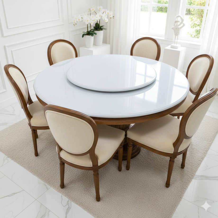 ชุดโต๊ะอาหารกลม 8 ที่นั่ง โต๊ะขนาด 1.8เมตร