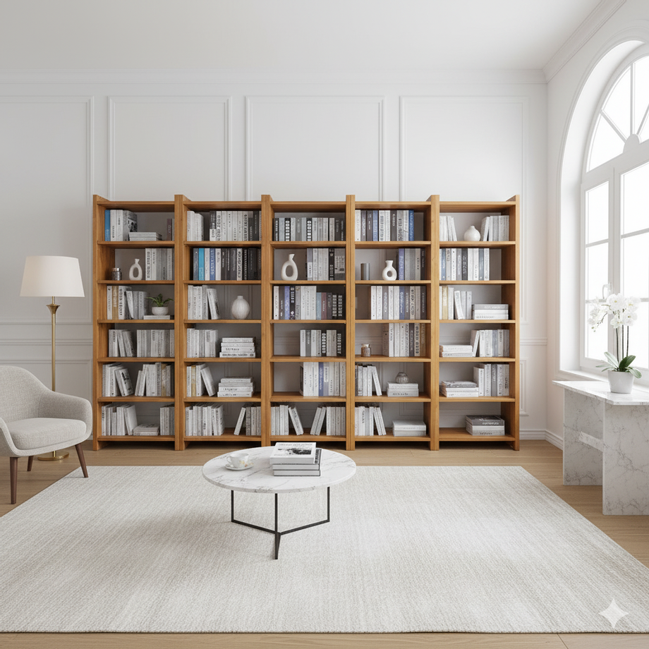 เติมเต็มทุกพื้นที่ จัดสรรสัดส่วนอย่างลงตัว ด้วยตู้หนังสือ ตู้กั้นห้อง ผลิตจากไม้สักแท้ 100% ขนาด 3.35 เมตร