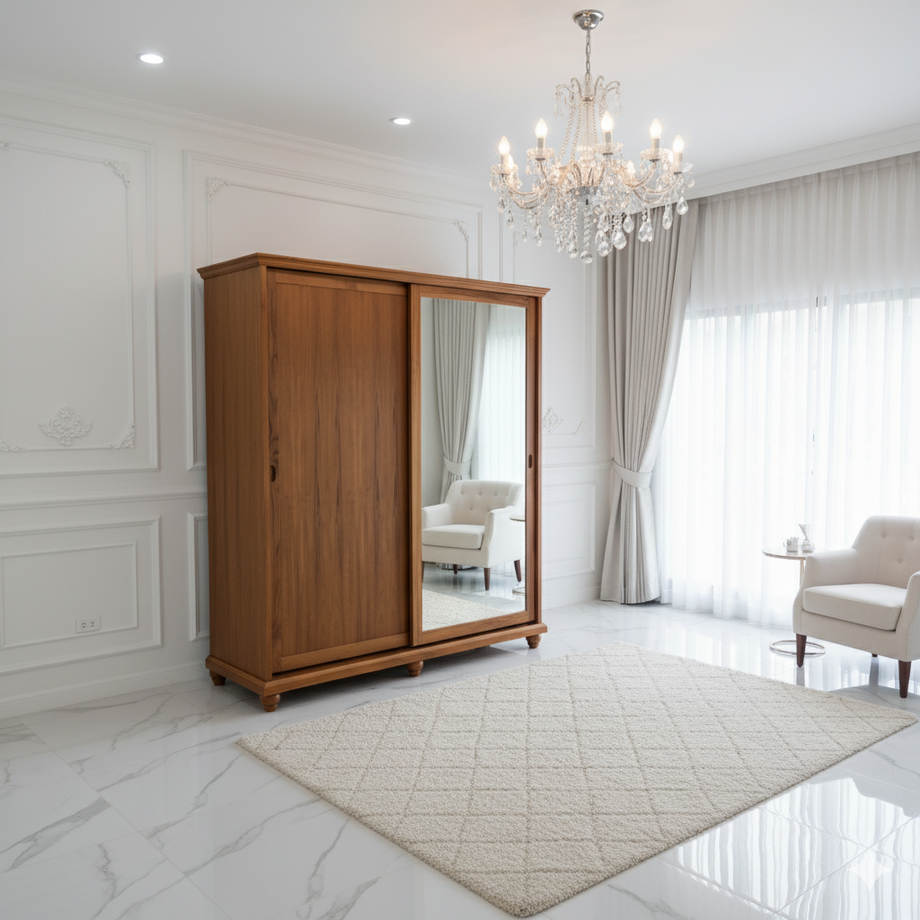 ตู้เสื้อผ้าบานเกร็ด 4บาน (ขนาด 2.4เมตร) ไม่อับชื้น ระบายอากาศได้ดี