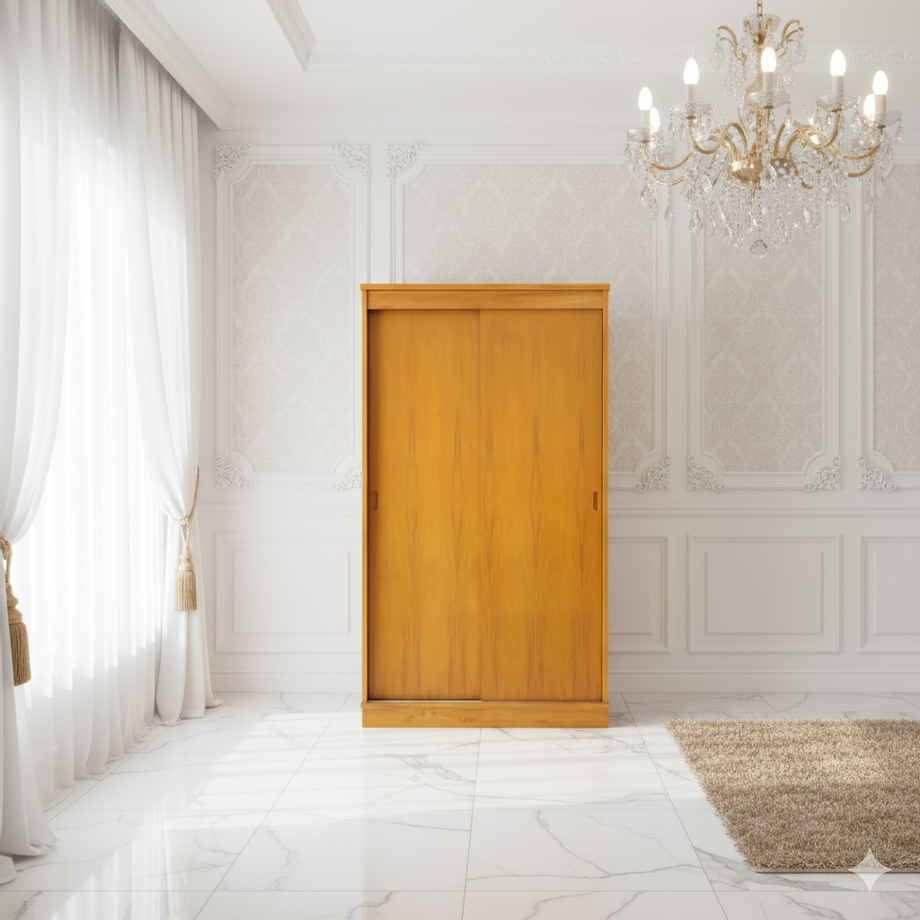ตู้เสื้อผ้าไม้สักผสมไม้อัดสัก บานเลื่อน ขนาด 1.2 เมตร