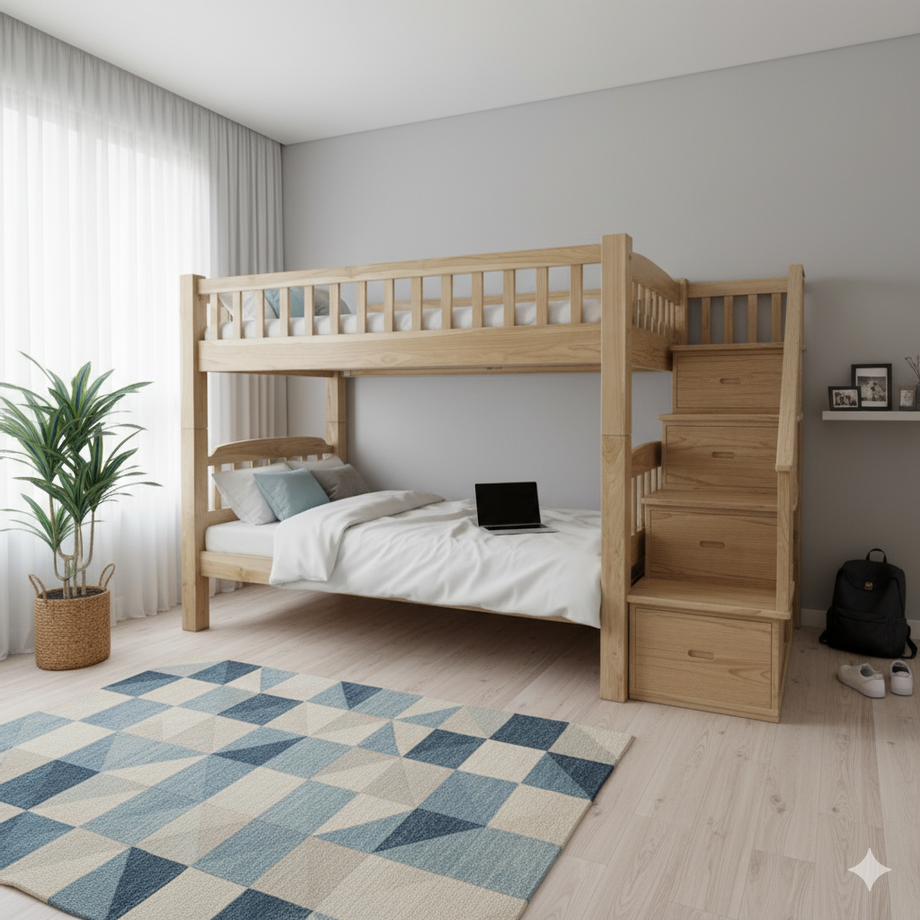 เพิ่มความลงตัวให้กับทุกห้องนอนด้วย เตียงสองชั้นไม้สักแท้ ดีไซน์สวยงาม แข็งแรง ทนทาน สามารถถอดแยกออกเป็นเตียงเดี่ยวได้ ช่วยปรับฟังก์ชันการใช้งานได้ตามความต้องการของครอบครัว