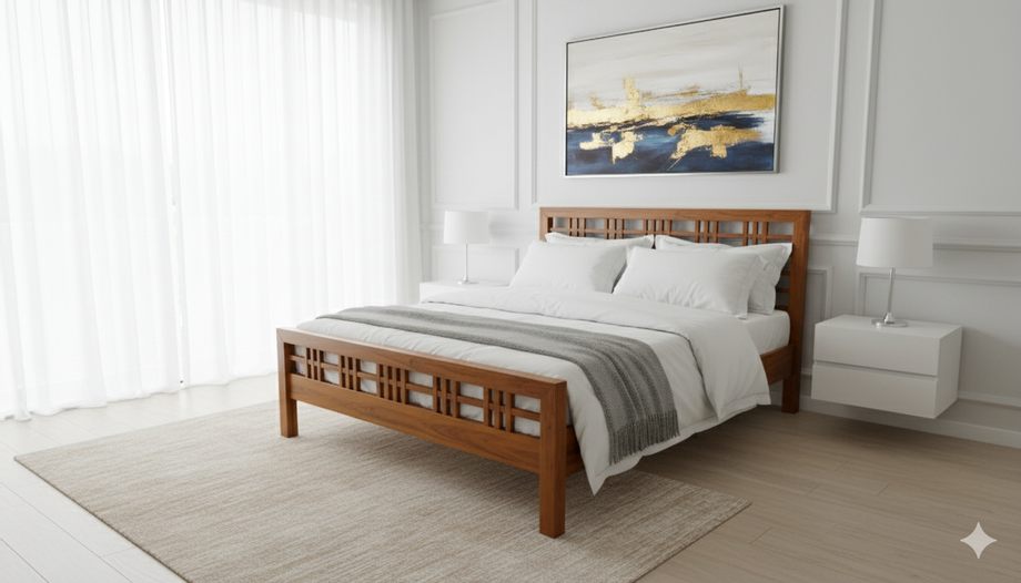 เตียงไม้สักแท้ รุ่นสายน้ำ ขนาด 5 ฟุต | เรียบหรู แข็งแรง ใช้งานได้ยาวนาน