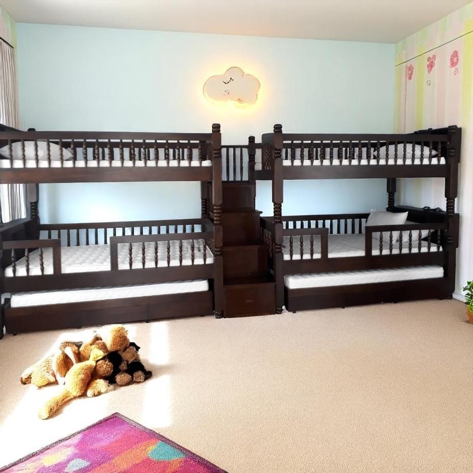 เตียงสองชั้นไม้สักแท้ ขนาดใหญ่พิเศษ นอนได้ 6 คน (450 × 120 × 190 ซม.)