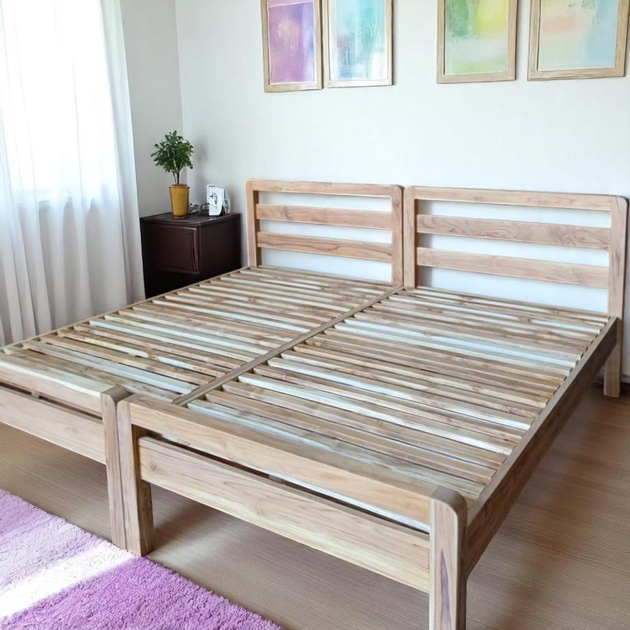หมดปัญหาเตียง 6 ฟุตเล็กไป! 🛌✨ ขยายพื้นที่ความสุขในการนอนของคุณให้กว้างกว่าเดิม ด้วยเตียงไม้สักแท้ขนาด 3.5 ฟุต 2 ตัว ที่นำมาต่อกันเป็นเตียงใหญ่ขนาด 7 ฟุตได้อย่างลงตัว!