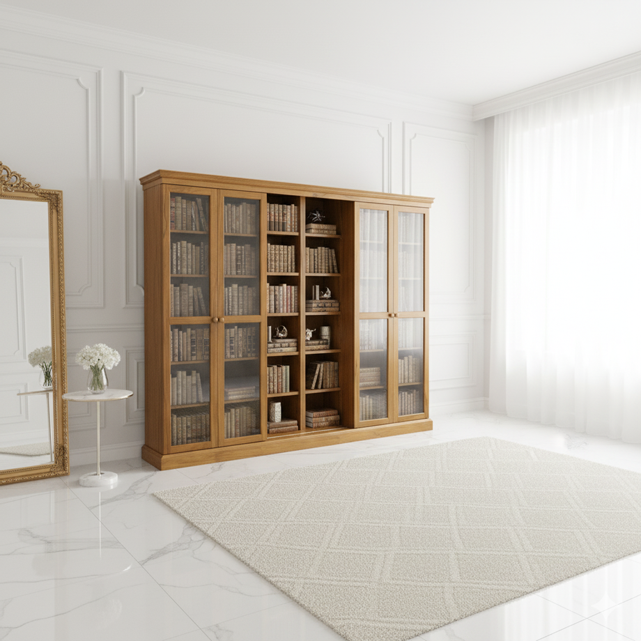 ตู้หนังสือออกแบบมาเพื่อให้ใส่หนังสือได้มากขึ้น ด้วยพื้นที่เท่าเดิม ตู้ใบนี้มีขนาด 2.5เมตร สูง 2.1เมตร ตู้ด้านหน้าเลื่อนไปมาได้เพื่อให้เก็บหนังสือได้มากกว่าปกติ (ใบหน้าเหมาะสำหรับหนังสือ Pocket Book) ตู้ลูกหน้าที่เลื่อนไปมาได้ รับน้ำหนักได้มากถึง 100กก. อุปกรณ์แข็งแรง เลื่อนสะดวกแม้ ใส่หนังสือจนเต็ม