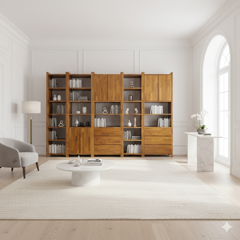 ตู้หนังสือไม้สักแท้ ขนาด 3เมตร