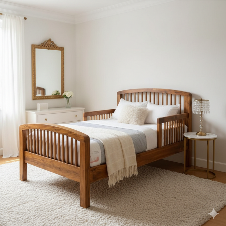 เตียงไม้สัก 3.5ฟุต มีแผงกันตก สำหรับ ผู้สูงอายุ