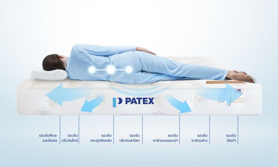 เราเข้าใจดีว่าการนอนหลับคือพื้นฐานของสุขภาพที่ดี ผลิตภัณฑ์ของ PATEX จึงถูกออกแบบมาโดยคำนึงถึงหลักสรีรศาสตร์ ช่วยรองรับน้ำหนักและส่วนโค้งเว้าของร่างกายได้อย่างสมดุล ช่วยลดอาการปวดหลังและออฟฟิศซินโดรม พร้อมคุณสมบัติทางธรรมชาติที่ช่วยป้องกันไรฝุ่นและแบคทีเรีย