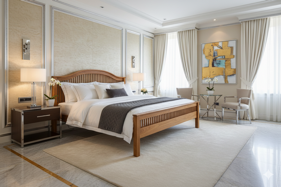 เตียงไม้สักรุ่นโซเฟีย ขนาด 6 ฟุต ดีไซน์โค้งหรู แข็งแรง ทนทาน