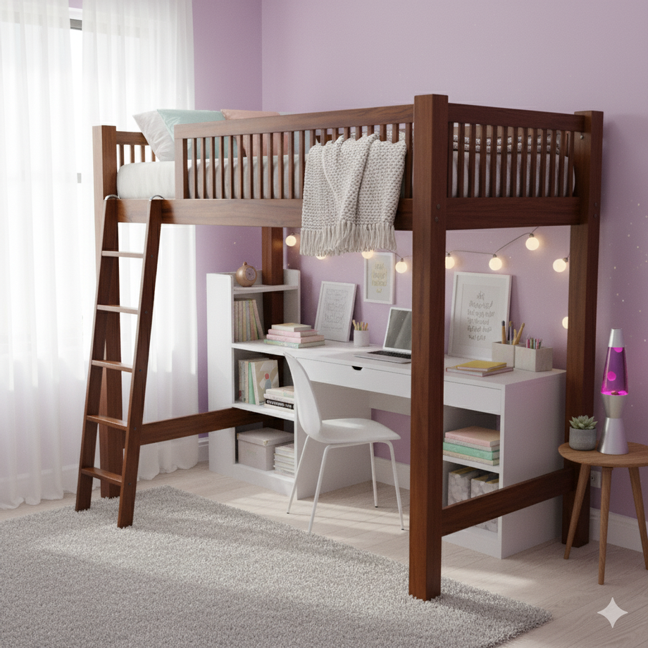 เตียงยกสูง 3.5 ฟุต แบบบันไดแขวน – ประหยัดพื้นที่ ใช้งานหลากหลาย