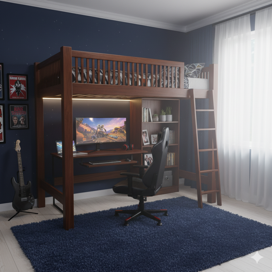 เตียงยกสูงรุ่นนี้ออกแบบมาเพื่อการใช้พื้นที่อย่างคุ้มค่า เหมาะสำหรับห้องที่มีพื้นที่จำกัด เช่น ห้องเด็ก ห้องนอนขนาดเล็ก หรือห้องพักอาศัยที่ต้องการเพิ่มฟังก์ชันการใช้งาน