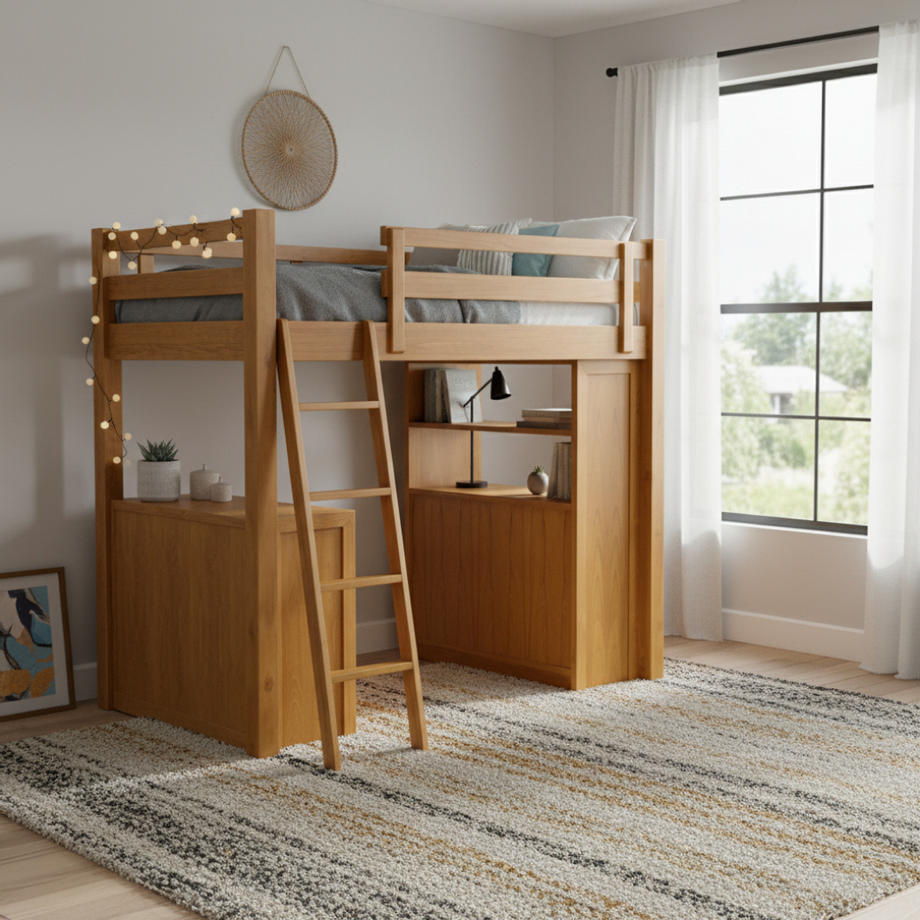 ฟังก์ชันเสริม: โต๊ะทำงานกว้างขวาง + ชั้นวางหนังสือ + บันไดขึ้นลงที่มั่นคง