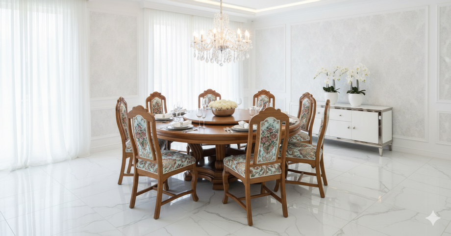 เหมาะสำหรับ: บ้านครอบครัวใหญ่, บ้านผู้ใหญ่ที่เน้นการรวมตัวกัน, หรือใช้ในห้องอาหารสไตล์วินเทจหรูหรา