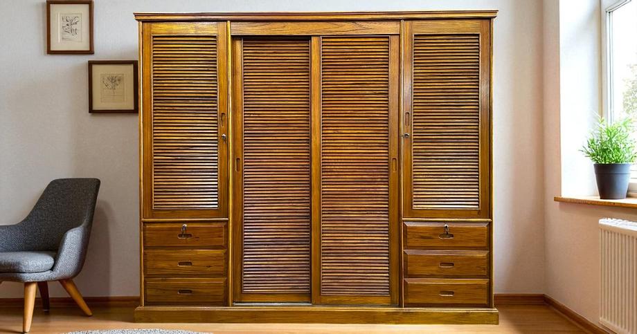 จัดการปัญหาเสื้อผ้าอับชื้น กลิ่นเหม็น ด้วย ตู้เสื้อผ้าบานเกร็ด ระบายอากาศได้ดี ขนาด 2.4 เมตร จากโรงงานผลิตเฟอร์นิเจอร์ไม้สัก โรงงานอุดมเฟอร์นิเจอร์