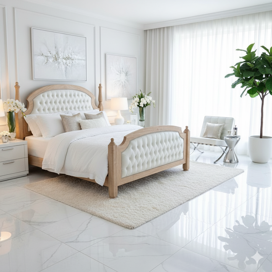 เตียงนอนไม้สักหัวเตียงบุด้วยหนังวัวธรรมชาติ ดีไซน์หรูหราเหนือกาลเวลา ผลิตจากไม้สักแท้ทั้งโครง แข็งแรง ทนทาน ใช้งานได้ยาวนานหลายสิบปี หัวเตียงบุด้วยหนังวัวแท้ ให้สัมผัสนุ่มหรู ดูภูมิฐาน พร้อมดีเทลงานเย็บประณีต เสริมบรรยากาศคลาสสิกอย่างมีรสนิยม เหมาะสำหรับผู้ที่มองหาความงดงามที่ผสมผสานระหว่างความหรูหราและความคงทน สร้างบรรยากาศห้องนอนให้สง่างาม อบอุ่น และมีเอกลักษณ์เฉพาะตัว